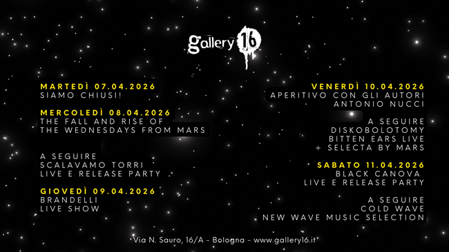 BOLOGNA – Gallery16 è lo shop di dischi, libri e il cocktail bar che vi aspetta con una programmazione sempre ricca di eventi live, presentazioni, djset e molto altro.