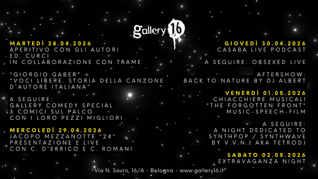 BOLOGNA – Gallery16 è lo shop di dischi, libri e il cocktail bar che vi aspetta con una programmazione sempre ricca di eventi live, presentazioni, djset e molto altro.