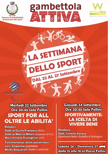 GAMBETTOLA (FC) – Una settimana dedicata a tutte le discipline dello sport e al benessere psicofisico per tutti, bambini, adulti fino alle attività dedicate alle disabilità. Si tratta di Gambettola ATTIVA, il progetto promosso dall’Amministrazione comunale – Assessorato allo Sport in collaborazione con le associazioni sportive gambettolesi, nell’ambito della WellnessWeek promossa dalla Wellness Foundation in tutta la Romagna. La settimana dello sport si terrà a Gambettola da martedì 22 a domenica 27 settembre, con incontri tematici di approfondimento e attività gratuite per tutti e con tutte le discipline al Parco Fellini, che per l’occasione si trasformerà in una palestra all’aperto per due intere giornate.