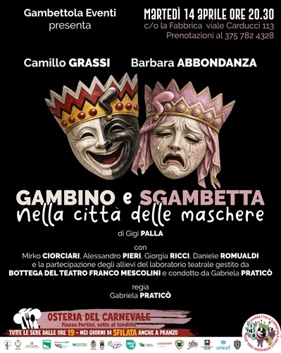 GAMBETTOLA (FC) – Debutta per la prima volta l’inedito spettacolo teatrale “Gambino e Sgambetta nella città delle maschere”, dedicato alle maschere del Carnevale della Romagna