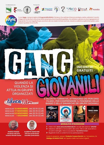 PIACENZA – Prenderà il via mercoledì 10 novembre, alle ore 20.15, presso la sede dell’Oratorio Corpus Domini in Strada Farnesiana 24, il corso gratuito in presenza “Gang giovanili, quando la violenza si attua in gruppi organizzati”. Il laboratorio formativo, rivolto a genitori, educatori, insegnanti e adulti interessati ad approfondire le dinamiche delle bande giovanili, verrà declinato in quattro incontri serali scanditi dalla visione di alcune sequenze tratte da film legati al tema che aiuteranno a comprendere meglio il fenomeno. I quattro incontri, che si terranno sempre al mercoledì (10, 17, 24 novembre e 1 dicembre) con inizio alle 20.15, saranno condotti da Marco Maggi, formatore e consulente educativo e Alberto Genziani, counsellor ed educatore professionale. L’iscrizione al corso si può effettuare – entro il 9 novembre – registrandosi al sito web www.educatoridistrada.it e confermando la partecipazione, mentre per maggiori informazioni l’email a cui fare riferimento è info@educatoridistrada.it.