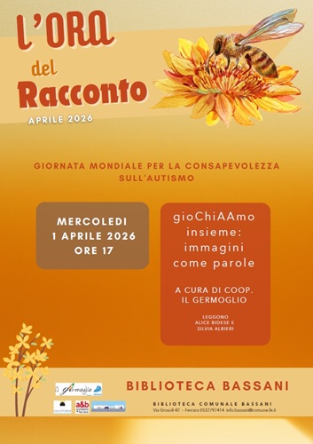 FERRARA – Sarà dedicato alla Giornata Mondiale della Consapevolezza sull’Autismo, il nuovo appuntamento con “L’ora del racconto”, mercoledì 1 aprile 2026 alle 17:00, alla biblioteca comunale Bassani (Via G. Grosoli, 42 Barco, Ferrara). In programma un incontro speciale a cura della Cooperativa Il Germoglio: attraverso storie, immagini e semplici attività di gioco, bambini e famiglie saranno invitati a scoprire come le immagini possano diventare parole, strumenti preziosi per comunicare, comprendere e stare insieme. Un momento di ascolto e partecipazione per avvicinarsi in modo naturale ai temi dell’inclusione, della comunicazione e della diversità.