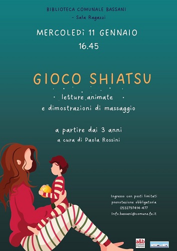 FERRARA – È dedicato alle famiglie con bambini dai 3 anni l’appuntamento di ‘Gioco Shiatsu’ in programma mercoledì 18 gennaio 2023 alle 16.45 alla biblioteca comunale Giorgio Bassani (via G. Grosoli 42, Barco – Ferrara). Un pomeriggio tra letture animate e dimostrazioni di massaggio shiatsu in forma di gioco, a cura di Paola Rossini.