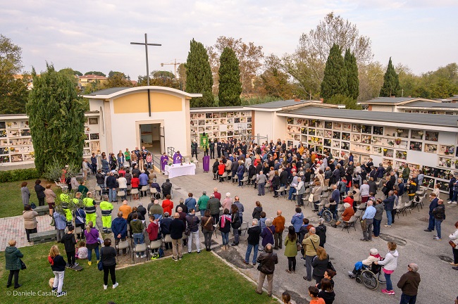RICCIONE (RN) – Si è svolta oggi pomeriggio la cerimonia di commemorazione dei defunti. Dopo la deposizione della corona d’alloro davanti al Monumento dei Caduti di Guerra (accanto alla sede del Municipio), la cerimonia è proseguita al cimitero nuovo con la deposizione di una corona d’alloro, per poi spostarsi al cimitero vecchio dove Don Massimiliano, parroco della Chiesa della Stella Maris ha celebrato la Santissima Messa. Il pomeriggio dedicato al ricordo dei defunti è stato accompagnato dal Corpo bandistico di Mondaino.