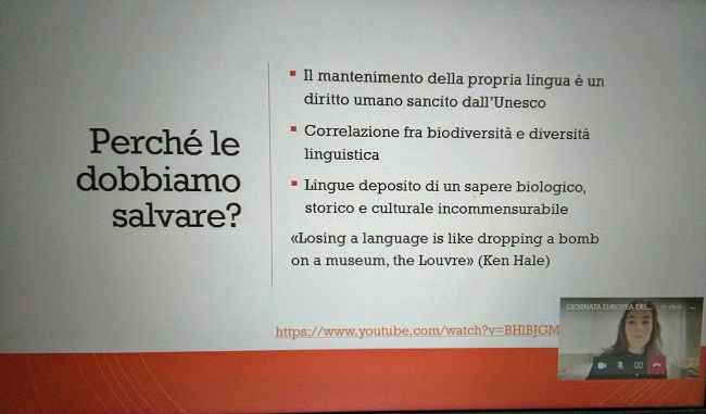 Un’opportunità di approfondimento rivolta agli studenti in una prospettiva, sempre più marcata, di cittadinanza europea e competenze spendibili in ambito internazionale, che ha messo in evidenza la natura delle lingue come patrimonio antico e universale alle radici dell’umanità, ma al tempo stesso in costante evoluzione. L’evento odierno è inserito tra i 1496 appuntamenti ufficiali organizzati in diversi Paesi per celebrare la ricorrenza “European Day of Languages”. Sul sito https://edl.ecml.at/ sono disponibili informazioni, curiosità e quiz per giocare con le lingue: sono tra 6000 e 7000 gli idiomi parlati nel mondo da 7 miliardi di persone, di cui circa 225 lingue indigene – corrispondenti al 3% del totale – in Europa.