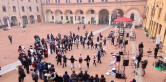 FERRARA - Musica, danza, memoria. Le danze ebraiche hanno animato ieri mattina piazza Municipale grazie a Musijam, in occasione del Giorno della Memoria.