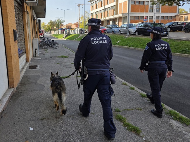 FERRARA – Stavano svolgendo un controllo mirato al contrasto dello spaccio di sostanze stupefacenti nella zona circostante la stazione, quando ad un certo punto l’attenzione degli agenti della Polizia Locale è stata attratta dal cane antidroga Chloe che ha puntato la tasca destra del giubbino indossato da un uomo. Senza sbagliare. Immediatamente fermato per accertamenti, infatti, dopo un attimo di titubanza il soggetto ha consegnato agli agenti un involucro contenente un pezzo di hashish ben avvolto in cellophane. Per questo, un cittadino nigeriano 37enne – già noto alle forze dell’ordine per precedenti specifici – è stato denunciato.