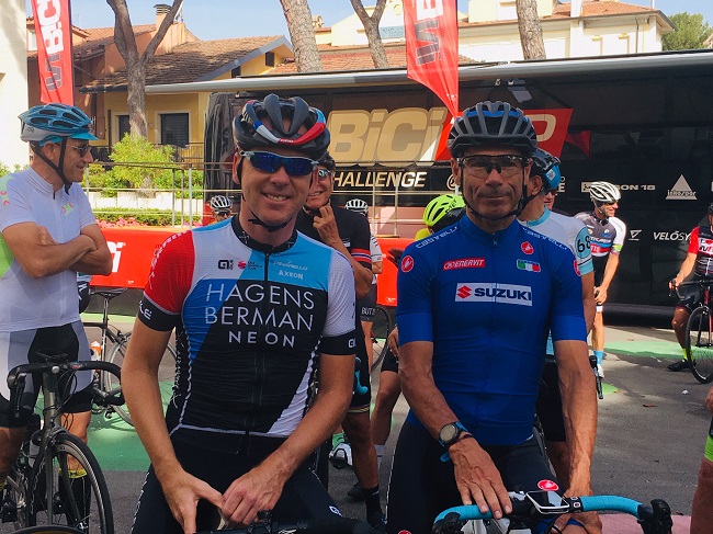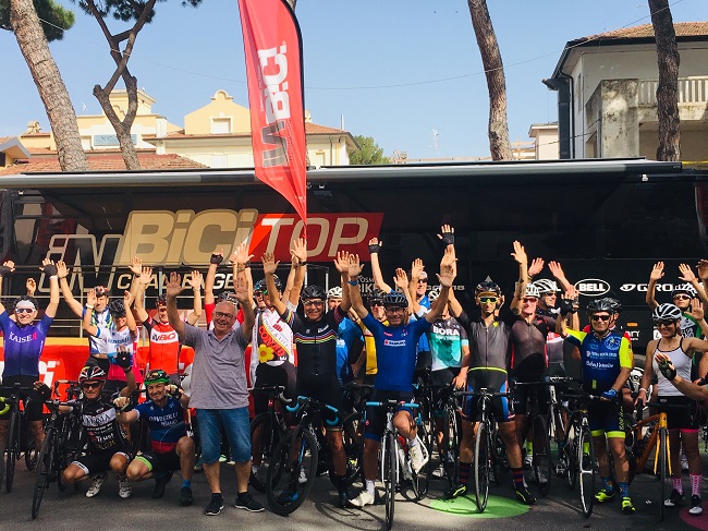 RICCIONE (RN) – Erano oltre 70 sui pedali questa mattina pronti a pedalare con il CT della Nazionale Ciclismo Davide Cassani. Tra i tanti che si sono dati appuntamento in piazzale Ceccarini per il Giro con il Campione anche il nuovo CT della Nazionale Ciclismo olandese Koos Moerenhout.