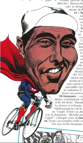 Se il ciclismo ha una grande storia, è infatti di lunga data anche il suo rapporto con il fumetto. A partire dalla citazione di Fausto Coppi ne “L’Inferno di Topolino”, classico Disney per eccellenza, si snoda un itinerario che fa passare il visitatore senza soluzione di continuità dal Giro d’Italia al Tour de France (la più celebre coppia di gare sui pedali), da Coppi a Bartali (una delle più celebri coppie dello sport di tutti i tempi), da Merckx a… Merckx, nell’impossibilità di trovargli un degno avversario. Storia dei primeggiatori assoluti ma anche degli eterni secondi. Avventure comiche, come quella di Gaston Lagaffe novello grimpeur, e drammatiche, come i puntuali resoconti sportivi realizzati negli anni Settanta sul Corriere dei Ragazzi di alcune tra le più importanti maglie rosa del fumetto italiano: Alessandrini, Di Gennaro, Toppi, Uggeri. La coppia più litigiosa della storia italiana, il prete e il comunista di provincia usciti dalla penna di Giovannino Guareschi, l’emblema della sfida umana ancor prima che politica tra cattolici e Pci, se le danno a fumetti anche sui pedali. E tantissime curiosità, tra cui: la morte in bicicletta, il Giro di Paperopoli, SuperMerckx, Asterix al Giro di Gallia, un cane felice in maglia gialla e un giallo con Felice Gimondi ad affiancare un curioso commissario. Una sezione a due ruote, un lenticolare omaggio ad un grande grimpeur romagnolo nato a pochi km da Rimini, è “Un Pirata in bicicletta”. Oltre a vincere le corse a tappe più importanti del mondo e far innamorare anche i più reticenti alle faticose imprese sportive, Marco Pantani è stato il protagonista di quattro storie a fumetti a colori per la Gazzetta dello Sport. In realtà, il Pirata non riuscì mai a pedalare sulla Rosea, a causa dei guai che lo videro suo malgrado protagonista durante il Giro d’Italia del 1999. Quelle avventure furono commissionate dalla Mercatone Uno (la squadra con la quale l’Elefantino di Cesenatico vinse Giro e Tour nello stesso anno) a Stefano Babini, talentuoso artista di Lugo di Romagna. Pantani divenne così protagonista di avventure spaziali, di sparatorie western, di duelli all’arma bianca. In mostra, schizzi preparatori, layout, tavole a colori delle avventure del pelato capace di entusiasmare anche gli italiani ancora convinti che il Tour sia una vacanza in motonave.