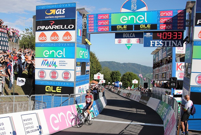 Nella quarta tappa del Giro d’Italia Under 23, dopo il via dalla sede Alé di Bonferraro di Sorgà, il primo arrivo in salita di questa edizione ha evidenziato la superiorità del talento britannico, trionfatore a braccia alzate davanti al Museo dei Fossili, vero ‘gioiello’ veneto nella località di Bolca, candidato a patrimonio Unesco. Pidcock conquista in Lessinia anche la nuova Maglia Rosa Enel.
