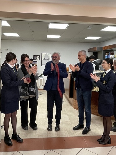 “Tutto quello che è successo questa mattina è molto più di una semplice riapertura di un bar – sottolinea Stefano Vitali presidente ASP Valloni Marecchia – È un segno concreto della apertura del Valloni alla città e ai suoi cittadini più giovani. Ci sono 90 anni di differenza tra Marco di 15 anni e Raffaela che ne sta per compiere 105. Pensare che Marco possa imparare il suo mestiere cercando di capire non solo come fare una buona cioccolata per Raffaela, ma anche a come possa relazionarsi con lei è davvero il valore aggiunto di questo progetto. La scuola deve formare certamente dei bravi professionisti, ma anche uomini e donne capaci di relazionarsi con gli altri. E allora il Valloni può e deve essere anche questo luogo di formazione. Un luogo in cui gli sguardi valgono più di mille parole.”