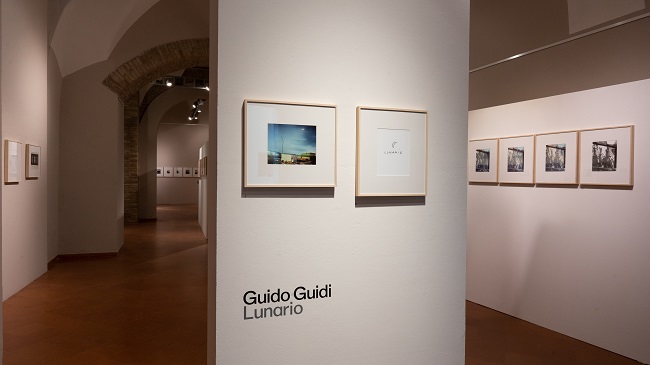 Le esplorazioni fotografiche dei paesaggi familiari, e le sperimentazioni condotte da Guidi nell’arco di cinquant’anni, scorgono nella dimensione inafferrabile della luna una ragione speculativa per ampliare il proprio campo d’indagine. Le prime fotografie dedicate agli studi sulla mela, concepite in risposta a un esercizio assegnato dal professore Italo Zannier agli studenti del Corso Superiore di Disegno Industriale a Venezia, i ritratti all’amica Mariangela Gualtieri, gli studi sull’eclisse parziale di sole del 1999, delineano un percorso analitico nei confronti del mezzo fotografico. Così, dall’osservazione del paesaggio quotidiano affiorano riflessioni di natura filosofica e letteraria, accomunate dall’interesse per il tema della luna. Guidi riconosce nella fotografia lo strumento ideale per accertare fenomeni, apparizioni lunari che riconducono a immaginari domestici metaforicamente rivolti ad una dimensione universale.