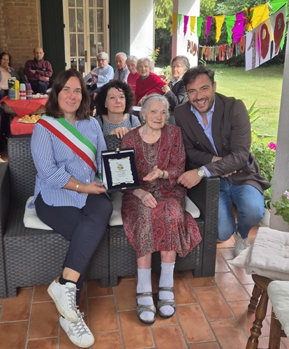 “E’ una grande felicità – ha detto l’assessore Coletti – poter osservare da vicino il grande affetto che tutti voi regalate ogni giorno a Dervilla, che oggi raggiunge un traguardo molto speciale. Essere da un secolo nella vita della città è prestigioso perché significa aver vissuto in prima persona cambiamenti che hanno portato alla creazione della nostra identità. Questo è un giorno bello, di celebrazione e di comunità. Grazie a Dervilla per essere un riferimento sicuro per familiari e conoscenti, ma anche agli operatori della Casa Famiglia che la accudiscono con grande dedizione”.