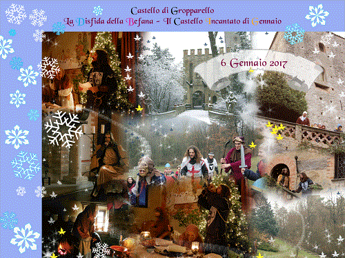 Una grande avventura nel bosco per combattere orchi e streghe e difendere il feudo dagli attacchi del Male, e poi il Ricevimento dei piccoli Cavalieri e delle piccole Dame nel Salone delle Feste, dove dovranno affrontare la Disfida della Befana, difendendosi con l’arma delle buone azioni fatte nell’anno, raccogliendo il coraggio necessario per affrontare le prove che la befana gli imporrà. Dovranno fare anche prove di abilità, e rispondere alle domande infide con le quali la Befana li metterà a dura prova e saranno di volta in volta premiati con cipolla o carbone o dolcetto, a seconda dell’esito raggiunto.