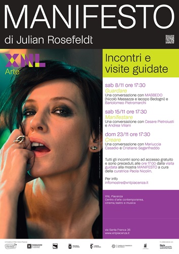 Per il decimo anniversario della sua prima presentazione presso ACMI – Australian Centre for the Moving Image di Melbourne nel dicembre del 2015, Manifesto di Julian Rosefeldt viene presentata come video installazione appositamente disegnata per gli spazi di XNL Piacenza Arte, realizzata in collaborazione con la casa editrice Electa.