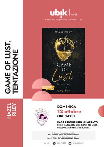 FORLÌ – Domenica 12 ottobre alle ore 14.00, Hazel Riley sarà ospite della libreria Ubik di Forlì per il firmacopie del suo nuovo libro “Game of Lust. Tentazione”, edito da Sperling & Kupfer.