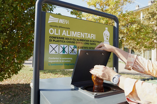 Per tutte queste ragioni, il Gruppo Hera da tempo mette in campo soluzioni per rendere più semplice la raccolta di questo particolare rifiuto e organizza campagne informative ad hoc, per incentivarne il conferimento nei contenitori stradali. Utilizzare questi contenitori è, infatti, semplice e comodo: è sufficiente raccogliere gli oli vegetali esausti – non solo quelli derivati dalla cottura o dalla frittura dei cibi, bensì anche quelli del tonno in scatola, o dei sottoli – in una bottiglia in plastica usata e gettare il tutto, ben chiuso, nel contenitore. È importante ricordare di non versare l’olio direttamente nel contenitore, ma di buttarlo con tutta la bottiglia: questa verrà poi svuotata e avviata a recupero direttamente da Hera. È possibile trovare l’elenco completo dei contenitori disponibili sul territorio comunale sul Rifiutologo e sul sito del Gruppo Hera.