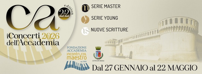 IMOLA (BO) – A partire dal 27 gennaio 2026, riparte la rassegna dei Concerti dell’Accademia, giunta alla ventiduesima edizione, realizzata dalla Fondazione Accademia Internazionale di Imola ‘Incontri con il Maestro’ in collaborazione con il Comune di Imola. È una rassegna di concerti che oltre a diffondere la musica classica si pone come occasione di dialogo tra formazione, territorio e pubblico.