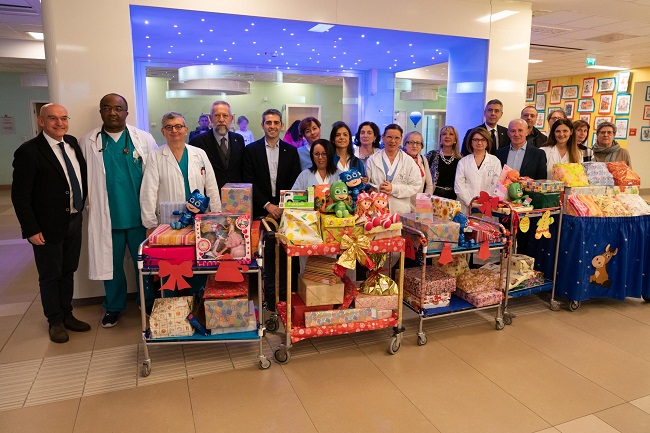 PARMA – Questa mattina sono stati consegnati i doni offerti da Fondazione Cariparma ai piccoli ricoverati presso i reparti pediatrici dell’Azienda Ospedaliera Universitario di Parma. Gli oltre cento regali sono stati distribuiti ai piccoli pazienti dal Sindaco Federico Pizzarotti come augurio da parte di tutta la città.
