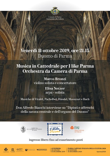 La serata è offerta alla cittadinanza dall’assessorato alla Cultura del Comune di Parma, in collaborazione con l’Orchestra da Camera di Parma, la Diocesi e la Fabbriceria della Basilica Cattedrale di Parma.