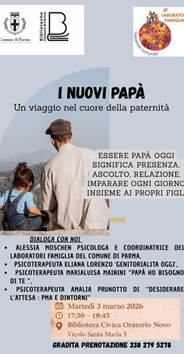 PARMA – Cosa significa essere padri nel 2026? Quali sono le sfide, i cambiamenti e le emozioni che attraversano gli uomini quando diventano genitori? Martedì 3 marzo 2026, dalle ore 17:30 alle 18:45, l’Oratorio Novo della Biblioteca Civica di Parma (Vicolo Santa Maria 5) ospiterà l’incontro dal titolo “I nuovi Papà“, dedicato alla trasformazione della figura paterna nella società contemporanea.