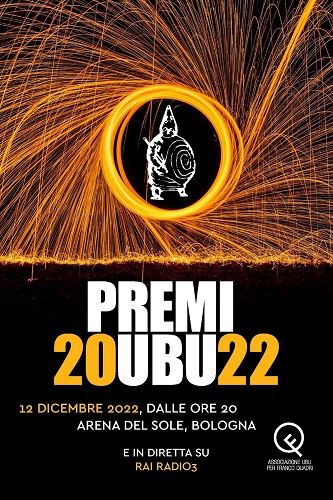 BOLOGNA – Per la prima volta il Teatro Arena del Sole di Bologna ospita la cerimonia di assegnazione dei Premi Ubu 2022 in sala Leo de Berardinis, lunedì 12 dicembre dalle ore 20.00 e, come ogni anno dal 2016, in diretta su Rai Radio3 dalle 20.30 (raiplayradio.it/radio3/), all’interno del palinsesto di Radio3Suite.