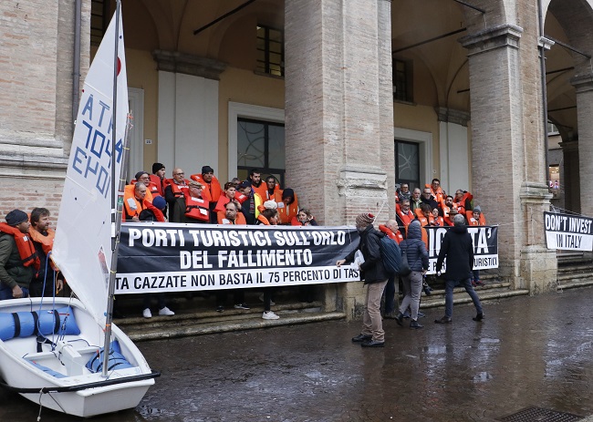 RIMINI – Sono stati una cinquantina gli operatori dei porti turistici italiani intervenuti questa mattina in Piazza Cavour per la manifestazione nazionale promossa da Assomarinas (Associazione Italiana Porti Turistici) in collaborazione con Ucina (Confindustria Nautica) contro l’aumento dei canoni per le concessioni destinate alla nautica.