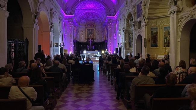 L’azione teatrale e musicale del grande Peppe Servillo, già nella sua essenza una rappresentazione raffinata ed elegante dell’anima partenopea, ha trovato un’apoteosi nella navata incantata, tra capitelli e stucchi dorati, sapientemente abbelliti dalle luci di scena. In questa incantevole cornice l’incontro musicale tra Raffaello e Peppe ha preso il volo, veleggiando tra passione ed emozioni senza tempo in una rilettura raffinata di un repertorio di classici immortali,che dipingono un panorama di una Napoli fatta di “mille colori” e altrettante contraddizioni e una poetica della vera tradizione musicale della Romagna fatta di cante e antichi balli contadini, presentati dal direttore artistico del Festival Raffaello Bellavista con originali ed eleganti arrangiamenti al pianoforte a coda, tra colto e popolare.Così in armonia con il titolo della serata “Romagna chiama, Napoli risponde” lo spettacolo ha celebrato la ricchezza musicale e culturale di Napoli e il meno noto patrimonio della tradizione romagnola. Il pubblico che gremiva la sala è stato trasportato in un viaggio emotivo e profondo senza tempo tra passioni e storie di amore intrise di gioia, dolore e speranza. Gli applausi a scena aperta,le canzoni cantate dal pubblico all’unisono con gli artisti,hanno decretato il successo della serata chiusa da una standing ovation senza fine, suggellata dalla consegna agli artisti delle preziose bottiglie di Brisighello della Cab, un’icona di Brisighella.