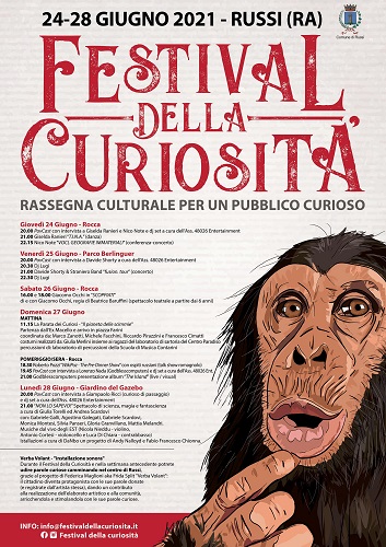 RUSSI (RA) – Cinque giornate cariche di appuntamenti che spazieranno dalla danza alla musica, dal teatro alle istallazioni, dai talk show alla magia, fino ad arrivare alla Parata dei Curiosi, unicità di questo Festival, quest’anno dedicato al tema “Il pianeta della scimmie”.