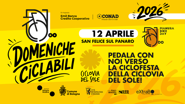 BOLOGNA – Alla scoperta della dolce pianura tra Bologna e Modena, dove i due territori si incontrano uniti dal filo della Ciclovia del Sole: domenica 12 aprile si torna a pedalare su strade chiuse al traffico per il Pianura Bike Day, prima delle Domeniche Ciclabili 2026.