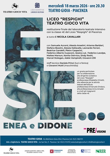 È quello che ha fatto la classe 4E del Liceo “Respighi” di Piacenza che mercoledì 18 marzo alle ore 20.30 al Teatro Gioia sarà protagonista della performance “E SE… Enea e Didone”, restituzione finale di un laboratorio teatrale intensivo di Teatro Gioco Vita condotto da Nicola Cavallari.