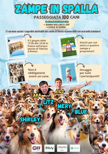 RIMINI – Nel cuore verde del Parco XXV Aprile va in scena ‘Zampe in spalla – Passeggiata 100 cani’, una domenica speciale dedicata all’amore incondizionato verso i quattro zampe e alla vita all’aria aperta.Organizzato in maniera congiunta con Comune di Rimini e con la Rimini Wellness OFF insieme a WashDog, Oasy (cibo per cani e gatti) e la cooperativa Cento Fiori, il raduno è in programma il 2 giugno alle ore 17.30 con ritrovo alla Piazza sull’Acqua, davanti al Ponte di Tiberio. Una volta lì, si dirà lo start a una serie di attività ludiche e sportive che si snoderanno al Parco XXV Aprile, per concludersi intorno alle 19.30.