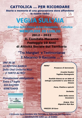 Per scoprirlo partecipate il 20 luglio alla VEGLIA SULL’ AIA, evento organizzato dal Comitato Macanno.