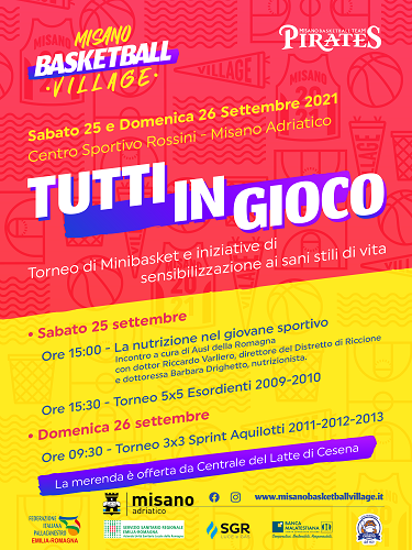 L’iniziativa Tutti in gioco rientra nel progetto Misano Basketball Village che, da luglio a oggi, ha proposto un ricco calendario di eventi dedicati allo sport e alla pallacanestro a cura di Asd Misano Pirates in collaborazione con il Comune di Misano Adriatico, Ausl della Romagna-Distretto di Riccione, Federazione Italiana Pallacanestro-Comitato Emilia-Romagna, SGR di Rimini, Banca Malatestiana e Centrale del Latte di Cesena che offre a tutti i bambini la merenda.