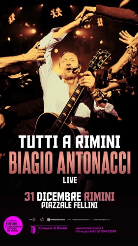 RIMINI – “Una star indiscutibile per un evento memorabile per il quale l’artista ha scelto non a caso il titolo “Tutti a Rimini, Biagio Antonacci live” – commenta il Sindaco Jamil Sadegholvaad -a conferma che per Rimini il Capodanno è sempre di più un’occasione per raccontare la sua vocazione di destinazione capace di offrire proposte uniche in un contesto speciale come quello della grande piazza affacciata sul mare d’inverno all’ombra del Grand Hotel caro a Fellini”.