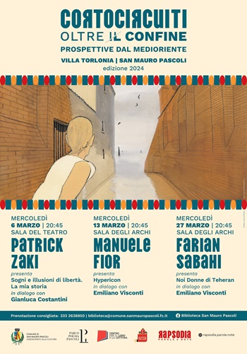 Dopo la prima seguitissima edizione, la rassegna inizia quest’anno con un ospite molto importante. Il 6 marzo 2024 a San Mauro Pascoli arriverà Patrick Zaki che ci porterà dentro alla sua storia, nei meandri più oscuri, nell’assurdità della vicenda vissuta, come ha già fatto nel libro uscito per la Nave di Teseo dal titolo Sogni e illusioni di libertà. A dialogare con lui, oltre a Emiliano Visconti, ci sarà Gianluca Costantini, che alla storia di Zaki ha dedicato una grafic novel, anzi, di più: ha regalato a tutti noi un disegno che da subito è diventato la forza propulsiva per la campagna in favore della sua liberazione. Un cortocircuito molto particolare, quindi, quello tra Costantini, che raccontò la sua storia quando Zaki non poteva raccontarla, e Zaki stesso che, ora, finalmente, con le sue stesse parole a quella storia può dare voce e corpo.