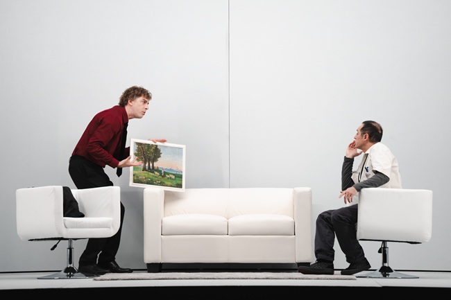 «L’autrice scrive un testo mettendo in scena tre differenti tipologie di maschio e di maschile, documentando la loro crisi di potere come se fosse una guerra di sopraffazione della gerarchia dell’amicizia – racconta Riondino –. C’è chi a questa guerra non vorrebbe assolutamente partecipare come Yvan, che rappresenta l’anima più dedita al compromesso, diciamo la più pacifica e pacifista, e poi ci sono Serge e Marc che cercano di imporre la loro idea, chi con una violenza passiva e chi in maniera attiva e prepotente. Il quadro e il concetto stesso di arte contemporanea diventano così una bellissima metafora attraverso la quale tre punti di vista si confrontano e si scontrano. In effetti qui c’è un bullo, un bullizzato e un agnostico, o forse soltanto un indifferente».