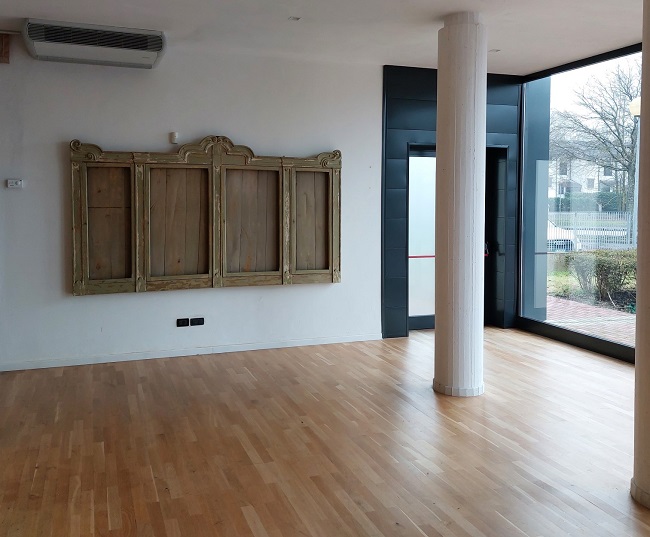 Antonio Mastrorocco spiega: “In questo locale si concentra la maggior parte degli oggetti, in quanto le tre grandi pareti della biglietteria sono state completamente rivestite di specchi databili da fine 800 al secondo dopoguerra. Oltre ad un effetto di dilatazione del volume del vano, si genera una moltiplicazione delle riflessioni di tutti gli oggetti contenuti”. Il bancone della biglietteria è una caratteristica realizzazione del laboratorio di Mastrorocco, in quanto il ripiano è ricavato da un infisso a persiana con il riempimento di cemento, il basamento in faggio curvato è una tipica realizzazione di inizio anni 60. “Nel foyer troneggia una enorme bacheca in verde salvia, proveniente da una scenografia teatrale, dove il pubblico potrà interagire e verrà informato di tutte le novità della stagione teatrale, mentre, seguendo le modalità tipiche dell’upcycling, i camerini sono stati riallestiti per offrire tutti i confort atti alla preparazione dello spettacolo da parte dell’attore”.