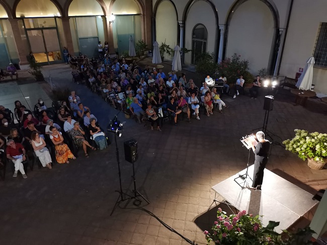 LA SCHEDA a cura degli organizzatori – Maria Paiato ha registrato il tutto esaurito alla Biblioteca Ariostea. Un enorme successo di pubblico ieri sera, 6 luglio 2022, a Palazzo Paradiso, sede della Biblioteca Ariostea, per lo spettacolo “Destinatario sconosciuto” , il secondo dei quattro appuntamenti della rassegna “Quattro modi per scrivere lettere”. Il romanzo di Katherine Kressmann Taylor, ricordiamo, pubblicato per la prima volta negli Stati Uniti nel 1938 e ignorato fino al 1999, per essere riscoperto poi a tre anni dalla morte dell’autrice, racconta dello scambio epistolare tra due soci in affari, nonché amici fraterni, Max Eiseinstein ebreo, e Martin Schulse, tedesco e di come il loro rapporto venga poi incrinato dall’ideologia nazista che stava prendendo il sopravvento in Germania. Molti i momenti di intenso coinvolgimento emotivo che la Paiato ha saputo trasmettere al pubblico soprattutto quando ha interpretato la preoccupazione di Max per sua sorella, attrice a Berlino e perseguitata per le sue origini.