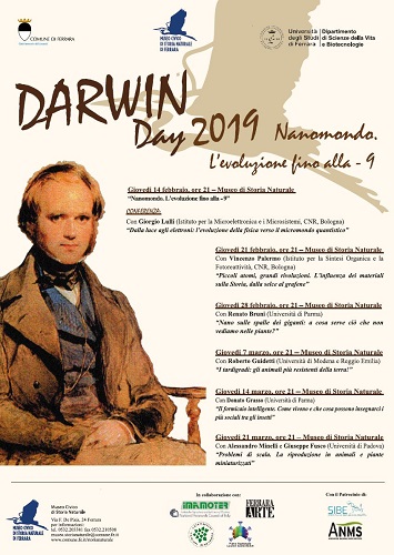 Il tradizionale ciclo di conferenze, tenute da studiosi e ricercatori e dedicato ad appassionati grandi e piccoli di temi scientifici, è promosso da Museo civico di Storia Naturale di Ferrara e Dipartimento di Scienze della Vita e Biotecnologie dell’Università di Ferrara, in collaborazione con l’Istituto IMAMOTER del Consiglio Nazionale delle Ricerche (CNR) sede di Ferrara e con il patrocinio dell’Associazione Nazionale Musei Scientifici (ANMS) e della Società Italiana di Biologia Evoluzionistica (SIBE).