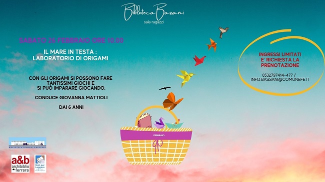 FERRARA – Una mattinata dedicata alla magica arte dell’origami per comprenderne i segreti e imparare a realizzare forme e giochi con la carta. L’appuntamento, pensato per bambini e ragazzi dai 6 anni, è per sabato 26 febbraio 2022 alle 10 alla biblioteca comunale Bassani di Barco (via Grosoli 42, Ferrara) in compagnia dell’esperta origamista Giovanna Mattioli.