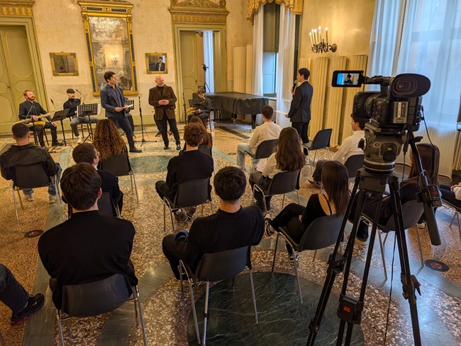 A impreziosire la narrazione storica e ad accompagnare le parole degli studenti c’è la musica dal vivo dell’ensemble “The Wind QUEENtet”. I musicisti hanno eseguito alcuni dei brani più celebri della band, grazie ai raffinati arrangiamenti curati dal Maestro Roberto Manuzzi. Al Ridotto, capolavori assoluti come We Will Rock You, We Are the Champions e la leggendaria Bohemian Rhapsody, sono stati affidati al talento di Ciro Grieco (tromba), Chesare Martinez (sax soprano), David Turchanovich (sax contralto), Alfredo Carlos Villa (sax tenore) e Oleg Andreatti (sax baritono).