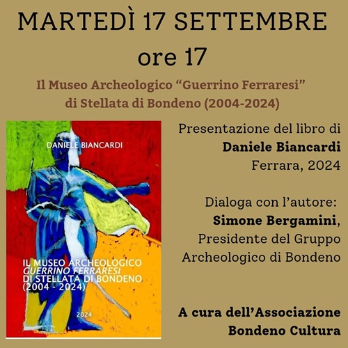 FERRARA – È dedicato al “Museo Archeologico ‘Guerrino Ferraresi’ di Stellata di Bondeno” e alle sue collezioni archeologiche il libro curato da Daniele Biancardi che martedì 17 settembre 2024 alle 17 sarà presentato nella sala Agnelli della biblioteca comunale Ariostea (via Scienze 17 Ferrara).