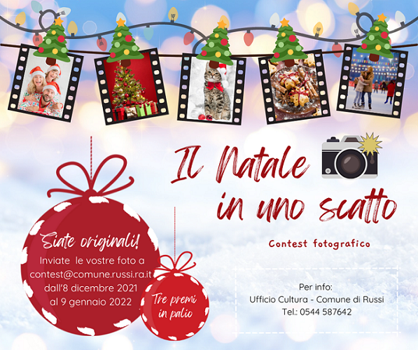 RUSSI (RA) – Al via l’8 dicembre il contest natalizio “Il Natale in uno scatto – edizione 2021/2022”, il contest fotografico indetto dal Comune di Russi per selezionare le migliori fotografie realizzate durante il periodo natalizio a Russi e frazioni.