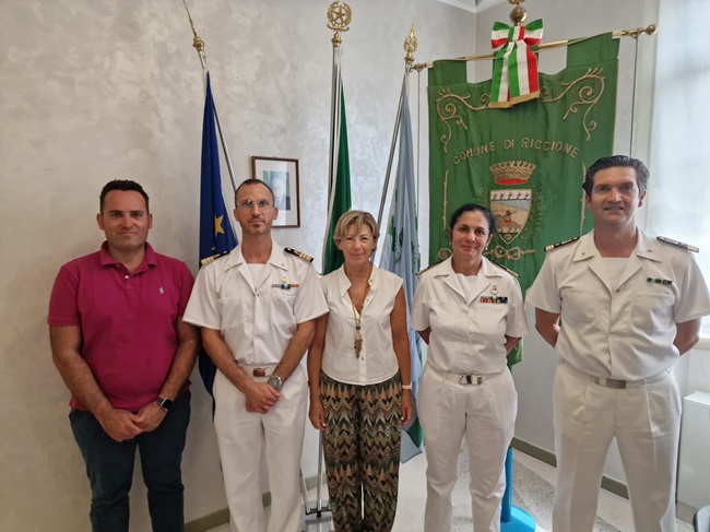 RICCIONE (RN) – La sindaca di Riccione Daniela Angelini e l’assessore al Demanio Christian Andruccioli hanno ricevuto ieri mattina in Municipio la visita del nuovo comandante della Capitaneria di Porto di Rimini, il Capitano di Fregata (CP) Ottavio Cilio. All’incontro, insieme al comandante dell’Ufficio Locale Marittimo di Riccione Massimo Russo, era presente anche la comandante uscente, il Capitano di Fregata (CP) Giorgia Capozzella, che lascia Riccione per un nuovo e prestigioso incarico in Campania.