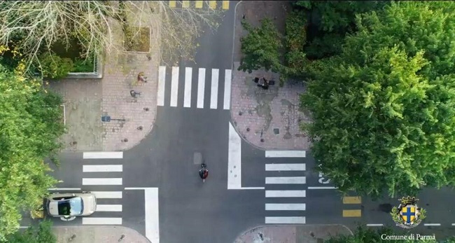 “Gli accessi sono stati caratterizzati con rialzi della pavimentazione stradale e restringimenti, oltre che opportuna segnaletica identificativa della zona. All’interno, negli incroci più critici sono state inserite le cosiddette “piazze traversanti”, cioè rialzi e restringimenti delle carreggiate stradali all’intersezione, con tracciamento di nuova segnaletica di attraversamento pedonale sui 4 lati e idonei dissuasori della sosta. Si è creato, insomma un senso differente delle strade, si è realizzata un’area dove lo spazio pubblico può essere condiviso in sicurezza da pedoni, ciclisti e veicoli.” Spiega il Dirigente del Settore Mobilità del Comune di Parma Nicola Ferioli.