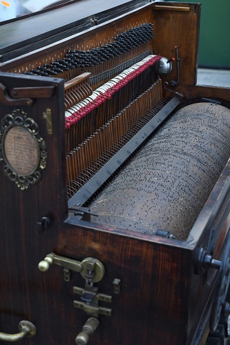 Il piano a cilindro è un raro strumento da strada su carrettino datato 1890, che veniva utilizzato per la questua nelle strade, nei borghi o alle feste di paese, solitamente trainato da un asinello o da un questuante. Curioso il suo funzionamento: girando una manovella si ruota il grande cilindro di legno dotato di migliaia di chiodini (quello del film ne conta circa 15.000), che fanno battere i martelli sulle corde creando la musica.