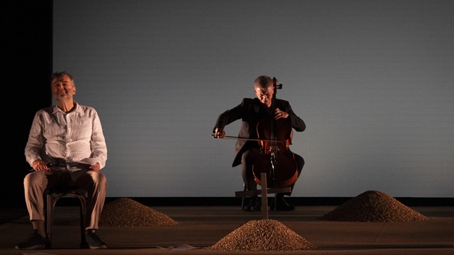 La pièce si compone di pochi ed essenziali elementi scenici, per spingere lo sguardo oltre ciò che si vede. Anche Il risveglio nasce dalla musica (con il violoncello dal vivo di Giovanni Ricciardi), seguendo la partitura di un ritmo interiore. Lamenti d’amore e di tenerezza trascinano gli attori e le attrici della Compagnia in una danza simile al rito sacro, vicino forse a un funerale. L’atmosfera si arricchisce di brani provenienti dalla memoria degli anni Settanta, mentre Delbono si ripete «Devi danzare, danzare nella tua guerra».