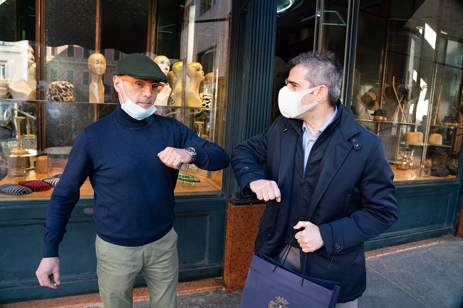 PARMA – Il Sindaco Federico Pizzarotti e l’Assessore Michele Guerra hanno voluto salutare i titolari dell’Antica Cappelleria Vender. La storica attività, dopo oltre un secolo (inaugurata nel 1900 come riporta la targa incisa sotto la vetrina), all’arrivo della prossima Pasqua, chiuderà i battenti. Lella e Filippo Vender hanno ricevuto dalle mani del Sindaco il volume di immagini Parma My Love, che racconta un viaggio in immagini all’interno della città.