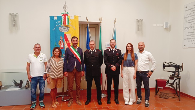 SAN MAURO PASCOLI (FC) – Nei giorni scorsi il Sindaco Moris Guidi, insieme alla giunta del Comune di San Mauro Pascoli, ha ricevuto nel Palazzo Comunale il Comandante della Stazione dei Carabinieri di San Mauro Pascoli, Pasquale Falco, che prende congedo dal servizio a San Mauro per un nuovo incarico. Per l’occasione il Sindaco e la Giunta, nel salutare e complimentarsi con il Comandante, hanno omaggiato Falco con la consegna di una targa di riconoscimento, simbolo di stima e gratitudine. Dopo 11 anni di servizio nella città pascoliana, di cui l’ultimo al comando della stazione, infatti il Comandante inizierà un nuovo incarico di comando nella vicina Roncofreddo. Nel corso della sua carriera a San Mauro Pascoli il Comandante Falco ha preso parte a innumerevoli operazioni tra cui, tra gli altri, il recupero della refurtiva e relativa individuazione dei responsabili di una truffa ai danni di una persona anziana, nonché l’arresto di due soggetti per la tentata rapina alle Poste di San Mauro proprio lo scorso 3 maggio.